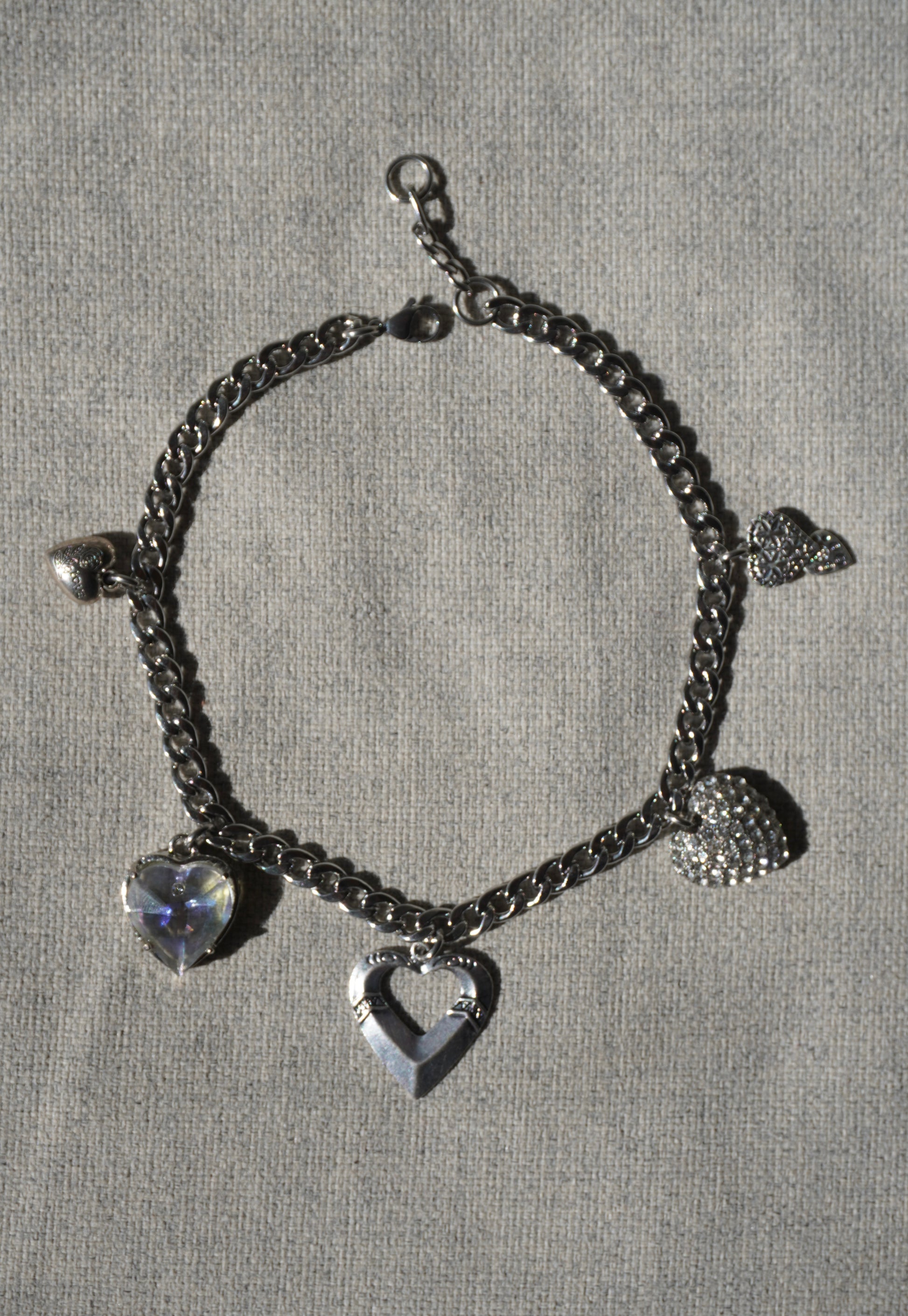 a stainless steel chain necklace with a preloved heart pendants
