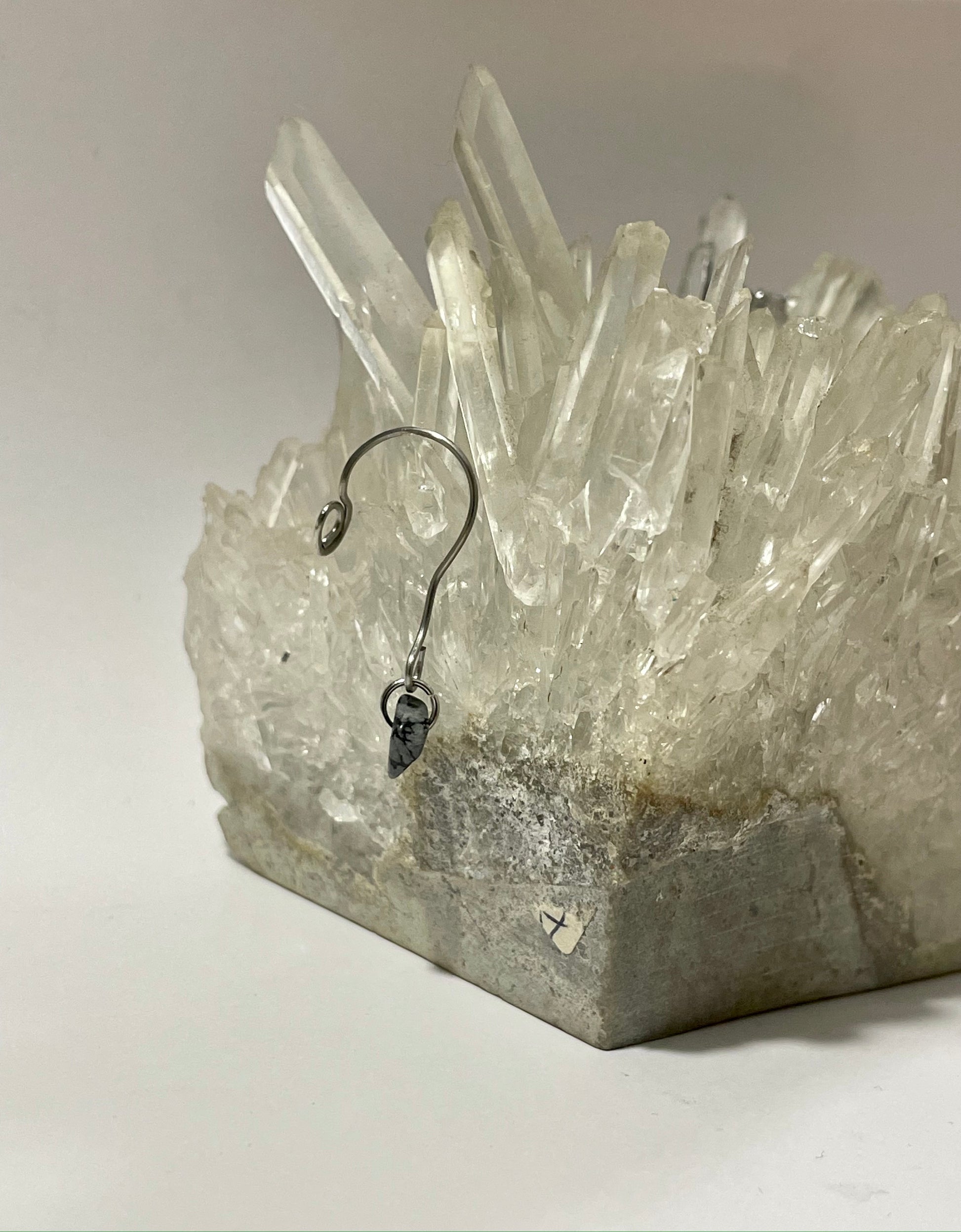 fake lip piercing made with stainless steel wire and a snowflake obsidian stone